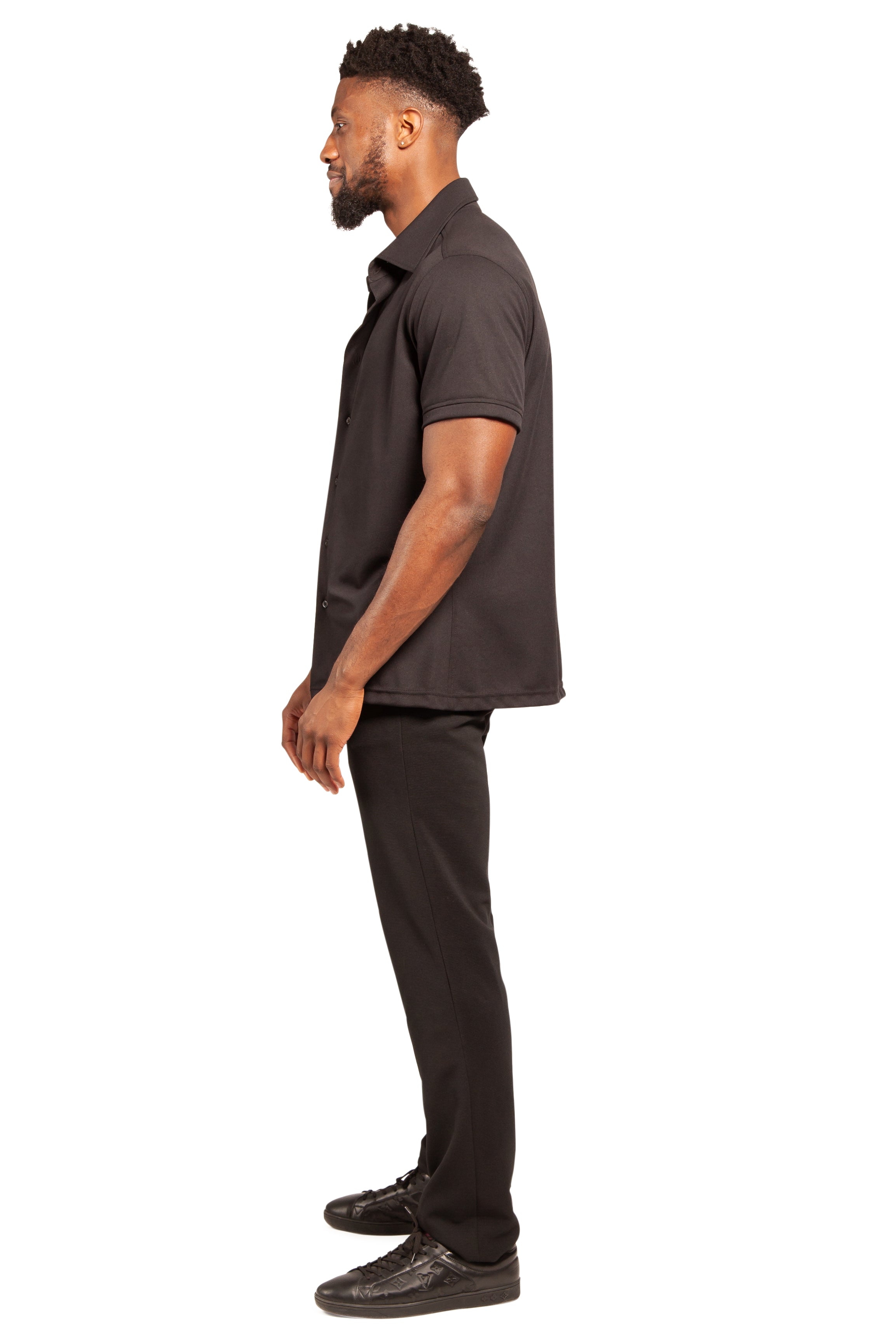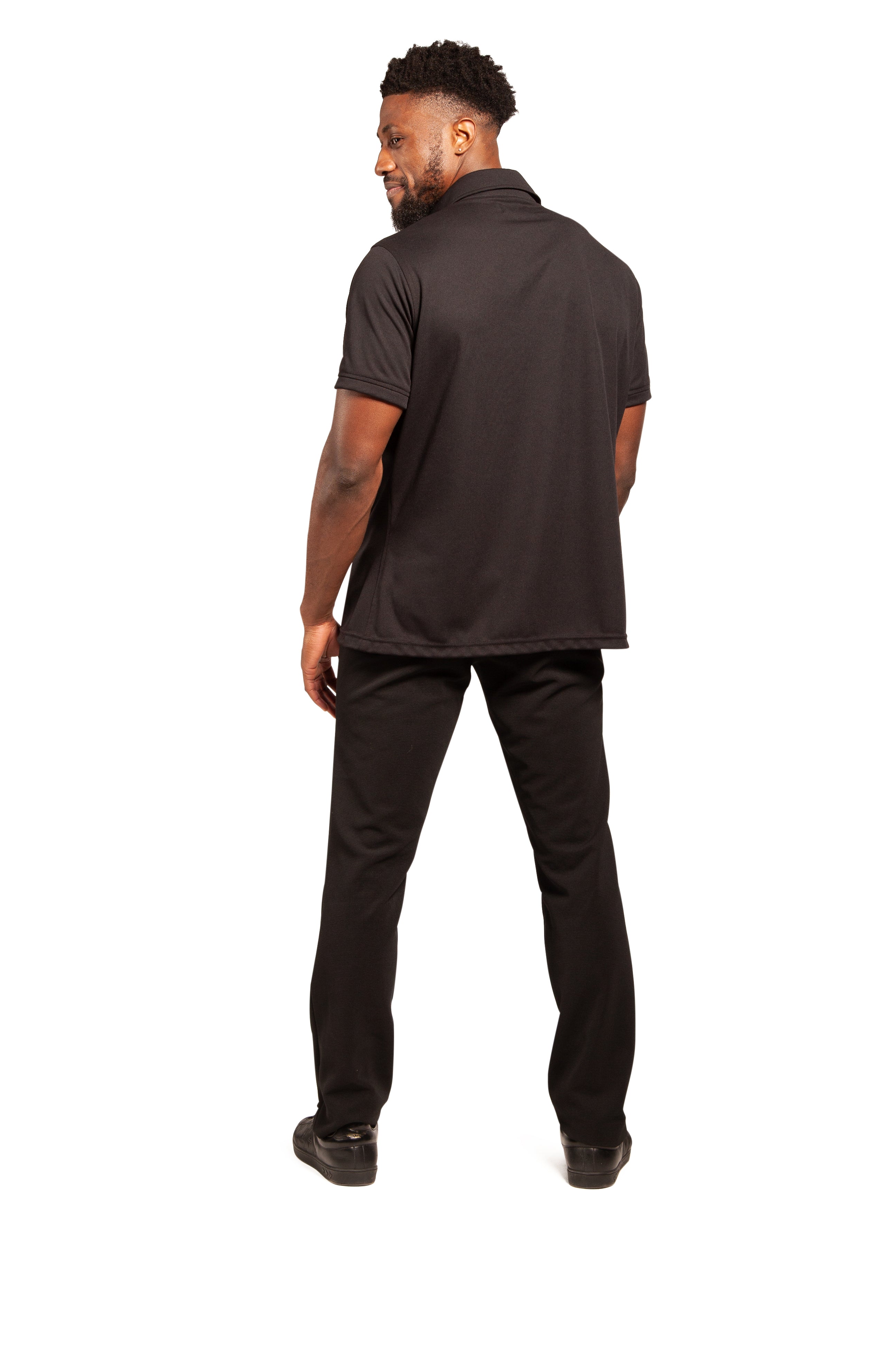 • All black Button-Down Polo